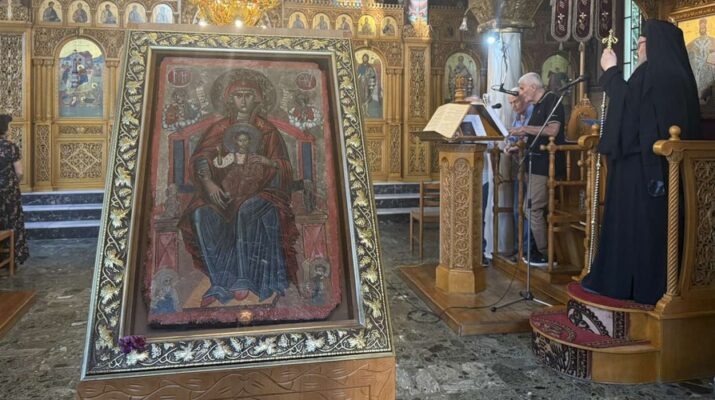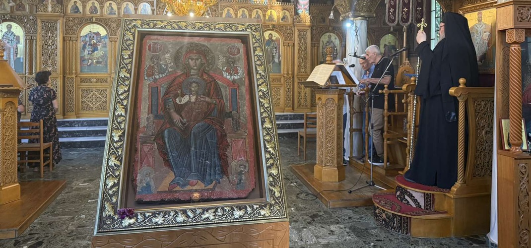 Προ τού «Δι’ ευχών…», ο Σεβασμιώτατος ευχήθηκε την ευλογία της Παναγίας στους ανθρώπους του χωριού, την προστασία της για την αποσόβηση κάθε δύσκολης περιστάσεως, αλλά και τη μεσιτεία της έτσι ώστε ο τόπος να ζήσει καλύτερες εποχές κατά τα όσα του αξίζουν και του πρέπουν.
