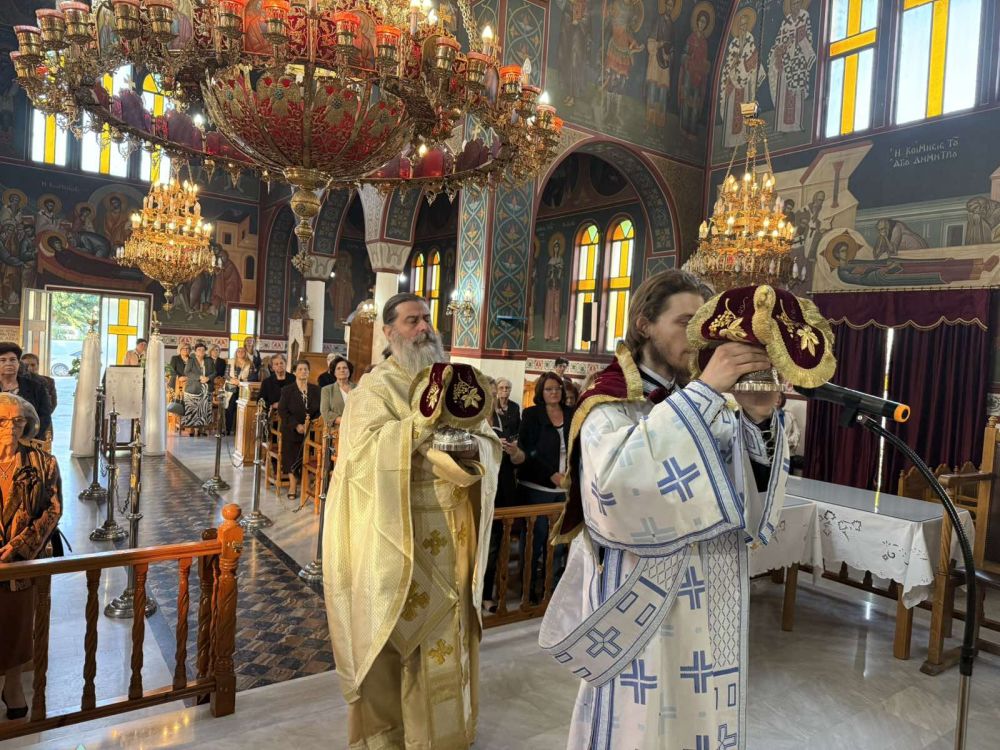Στην φροντισμένη Εκκλησία του Αγίου Δημητρίου, η οποία είναι νεότερη από την ιστορική Εκκλησία του Αγίου Αθανασίου, κεντρικού Ναού του χωριού, μαζεύτηκαν αρκετοί πιστοί προκειμένου να λατρεύσουν τον Άγιο Θεό, να κοινωνήσουν τα παιδιά τους και να ακούσουν λόγο Θεού.