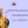 - Το απόγευμα της Λάμπροδευτέρας στις 7,30, θα τελεστεί ο μεθεορτος Εσπερινός, η Παράκληση του Αγίου Γεωργίου και θα λάβει χώρα η Λιτάνευση της Ιεράς Εικόνας και του Λειψάνου του Αγίου Γεωργίου, με την συνοδεία της Φιλαρμονικής του Δημοτικού Ωδείου Λάρισας.