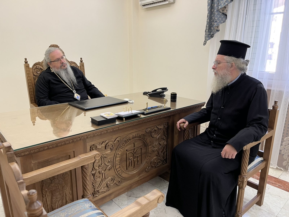 Ο Σεβασμιώτατος Μητροπολίτης Λαρίσης και Τυρνάβου κ. Ιερώνυμος δέχθηκε στο γραφείο του, τον Γενικό Αρχιερατικό Επίτροπο της Ιεράς Μητροπόλεως Κερκύρας και Διευθυντή του επιστημονικού περιοδικού της Μητροπόλεώς π. Θεμιστοκλή Μουρτζανό προκειμένου να συνεργαστούν για την έκδοση του 15ου τεύχους του «Αχιλλίου Πόλις», το οποίο θα είναι αφιερωμένο στην πρόταση ζωής της Ορθοδοξίας προς το νεκροταφείο που λέγεται Ευρώπη, κατά την έκφραση του Ντοστογιέφσκι.