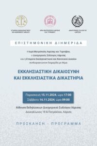 Επιστημονική Διημερίδα με θέμα: «Εκκλησιαστική Δικαιοσύνη και Εκκλησιαστικά Δικαστήρια»