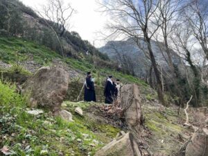 Η Ακολουθία της ρίψεως του Σταυρού στα ύδατα του ποταμού Πηνειού στο κατεστραμμένο Ιερό Προσκύνημα Αγίας Παρασκευής Τεμπών