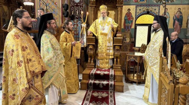 Ο Σεβασμιώτατος Μητροπολίτης Λαρίσης και Τυρνάβου κ. Ιερώνυμος χοροστάτησε στον πανηγυρικό Όρθρο της Εορτής και στη συνέχεια τέλεσε τη Θεία Μυσταγωγία, συμπαραστατούμενος από τους καλούς Ιερείς του Ναού καθώς επίσης και τον Αρχιδιάκονο της Ιεράς Μητροπόλεως.