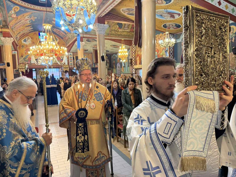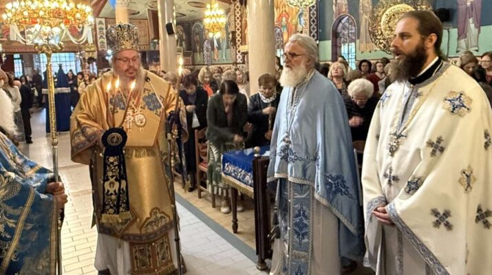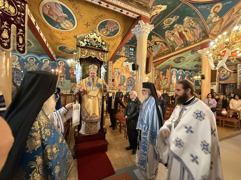 Στο κήρυγμά του ο Σεβασμιώτατος στάθηκε στο αποστολικό ανάγνωσμα της ημέρας, σημειώνοντας πως στην εποχή της Παλαιάς Διαθήκης ο Θεός επικοινωνούσε με τους ανθρώπους μέσω Αγγέλων, αποστέλλοντας τους προκειμένου να μεταφέρουν μηνύματα ή να εκπληρώσουν κάποια αποστολή. Toύτο δε, λόγω της αναμνήσεως ότι μεταξύ Θεού και ανθρώπων υπήρχε έχθρα, μετά το Προπατορικό αμάρτημα, οπότε διαπιστώθηκε η ανυπακοή του ανθρώπου στο θείο θέλημα. Αντίθετα στην Καινή Διαθήκη δεν χρειαζόμαστε μεσάζοντες. Η δύναμη των Μυστηρίων, η Χάρις του Παναγίου Πνεύματος όπως υπάρχει και κατευθύνει τον θεσμό της Εκκλησίας, ώστε να φωτίζει τον άνθρωπο και να προσανατολίζεται προς τον Χριστό, επικοινωνώντας απευθείας μαζί του μέσω της προσευχής και λαμβάνοντας τον ίδιο τον Χριστό ως σώμα και αίμα Χριστού στον εαυτό του ο καθένας, διασφαλίζουν τη μοναδική μας άμεση σχέση με τον Σωτήρα και Λυτρωτή μας.