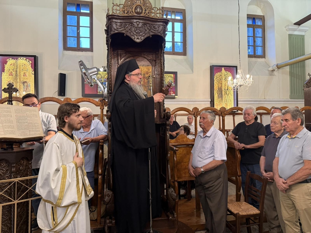 Ο Σεβασμιώτατος λαμβάνοντας αφορμή από την ιστορικότητα του χώρου, έκανε μία αναδρομή στην τοπική ιστορία, προκειμένου να καταδείξει πως όσα θαυμάζουμε εμείς σήμερα τόσο ώς τέμπλο, όσο και ως αγιογραφίες, αλλά και φορητές εικόνες σπάνιας ομορφιάς και τεχνοτροπίας, φτιάχτηκαν όχι από το περίσσευμα ή από τον πλούτο των προπατόρων μας, αλλά από το υστέρημά και με τις θυσίες των προπατόρων μας. Τόνισε δε, ότι είναι επιτακτικό το χρέος, ημών των νεώτερων, να προστατεύσουμε αυτή την κληρονομιά που μας παραδόθηκε, να σεβόμαστε τα όσα έχουμε ως πολύτιμο πλούτο και να δείχνουμε το αντίστοιχο ενδιαφέρον, ώστε τα κειμήλια να συντηρούνται και να διατηρούνται, για να παραδοθούν στις επόμενες γενεές ως οι αψευδείς μαρτυρίες του πόνου, του κόπου, του μαρτυρίου των προπατόρων μας, ιδίως κατά τα δύσκολα χρόνια της Τουρκοκρατίας.