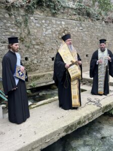 Η Τελετή Κατάδυσης του Τιμίου Σταυρού στο Αγίασμα του Ιερού Προσκυνήματος Αγίας Παρασκευής Τεμπών.