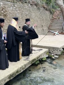 Η Τελετή Κατάδυσης του Τιμίου Σταυρού στο Αγίασμα του Ιερού Προσκυνήματος Αγίας Παρασκευής Τεμπών.