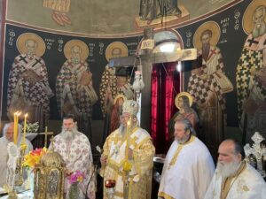 Ο Σεβασμιώτατος λειτούργησε και τέλεσε το τεσσαρακονθήμερο μνημόσυνο της μακαριστής πρεσβυτέρας Αρετής στο Συκούριο.