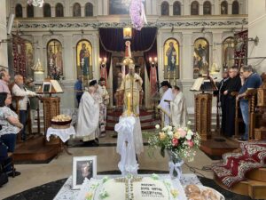 Ο Σεβασμιώτατος λειτούργησε και τέλεσε το τεσσαρακονθήμερο μνημόσυνο της μακαριστής πρεσβυτέρας Αρετής στο Συκούριο.