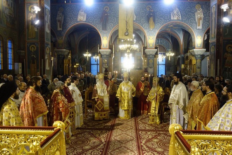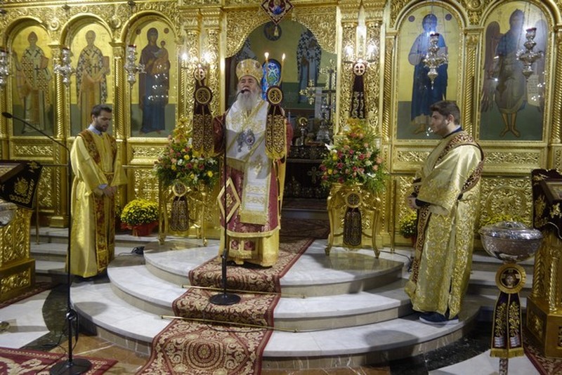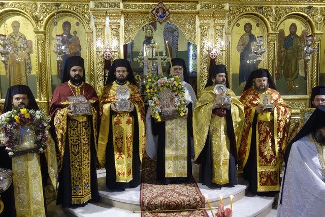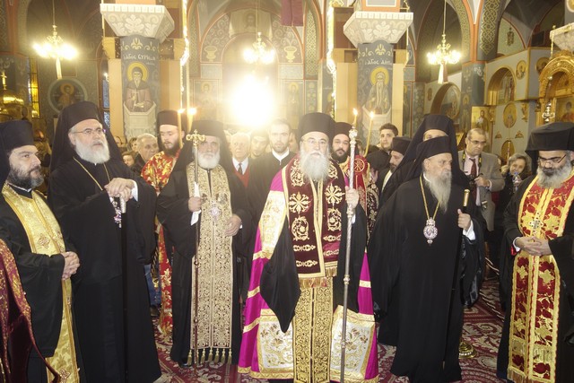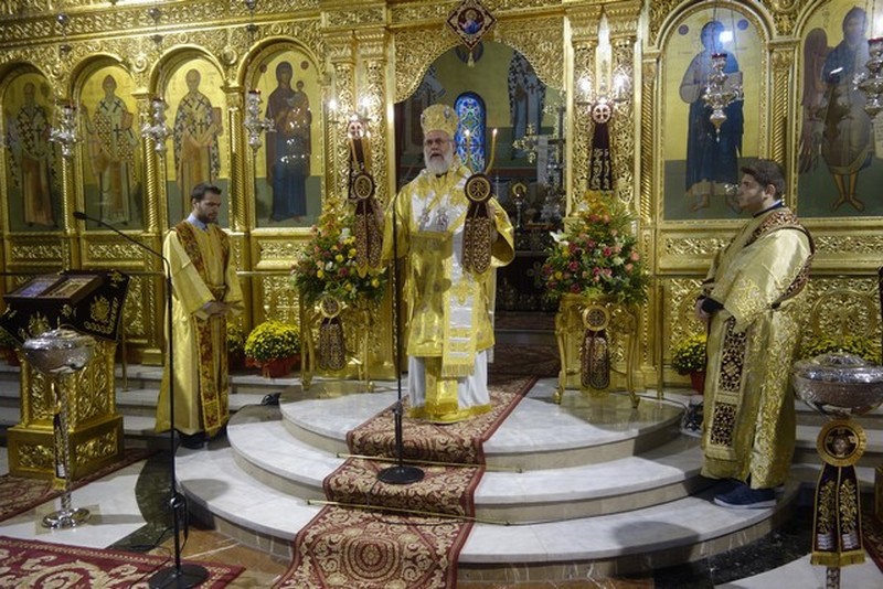 Την επομένη ημέρα, Κυριακή 1η Νοεμβρίου το πρωί, τελέσθηκε πανηγυρικό Αρχιερατικό συλλείτουργο, στον κατάμεστο από πιστούς χριστιανούς Ιερό Ναό του Αγίου Νικολάου, στο οποίο προέστη ο Σεβασμιώτατος Μητροπολίτης Ιλίου κ. Αθηναγόρας και συλλειτούργησαν οι Σεβασμιώτατοι Μητροπολίτες Ζακύνθου κ. Διονύσιος και Λαρίσης κ.Ιγνάτιος, μαζί με πλειάδα ιερέων και με την συμμετοχή πολλών Ιεροψαλτών, αναγνωστών, μαθητών και ιεροπαίδων. Στο κήρυγμα του ο Μητροπολίτης Ιλίου κ. Αθηναγόρας αναφέρθηκε στην ζέουσα πίστη των Αγίων και στο πώς Εκείνοι κατόρθωσαν να φτάσουν σε ύψη αγιότητος, δίδοντας καθημερινά την μαρτυρία της πίστεώς τους και βιώνοντας τον Χριστό σε κάθε έκφανση της επιγείου ζωής τους. Κάλεσε δε τους πιστούς να μείνουν εδραίοι και αμετακίνητοι στην Ορθόδοξη πίστη, που καθημερινά αναδεικνύει αγίους, οσίους και μάρτυρες.