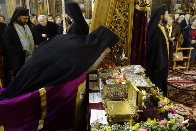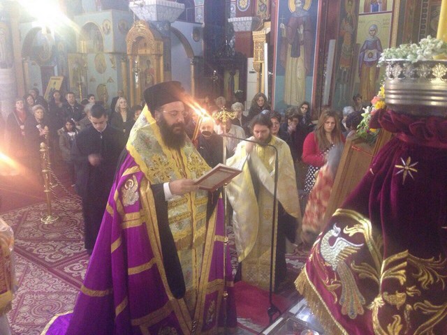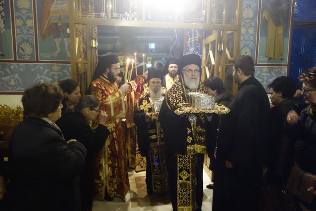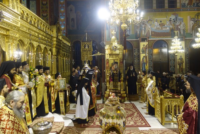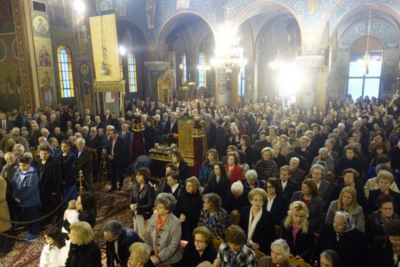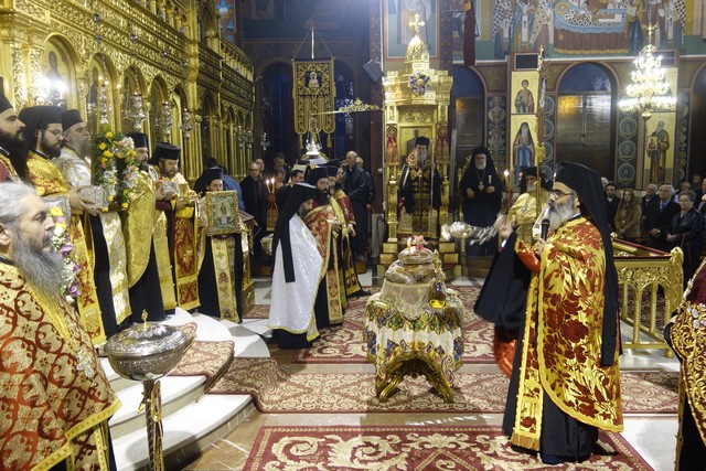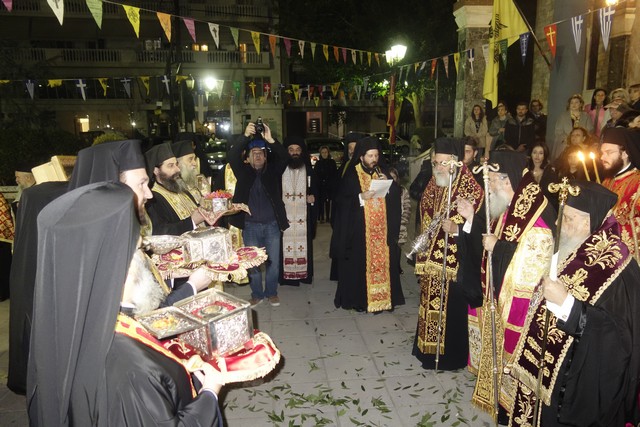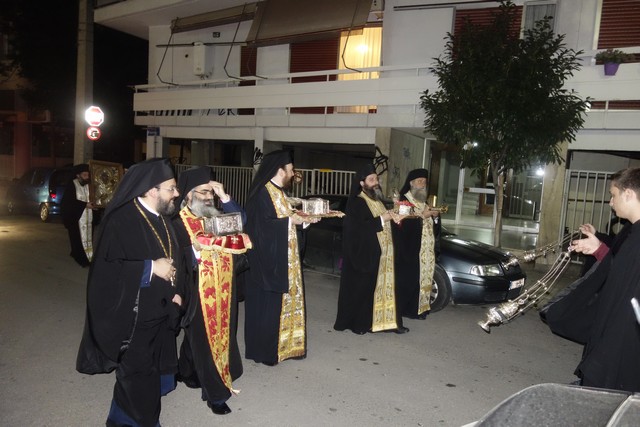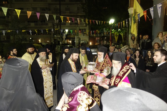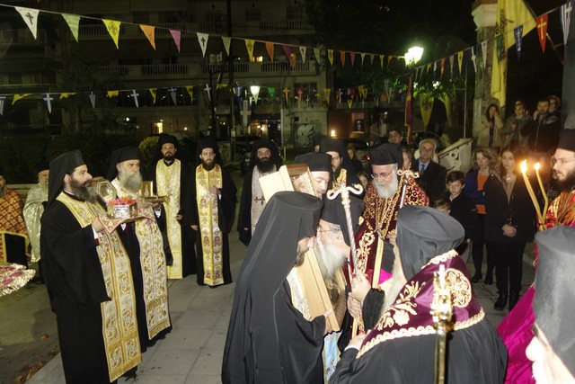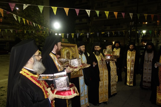 Πολύ συγκινητική ήταν η παρουσία πολλών νέων ανθρώπων που περίμεναν αρκετή ώρα στην ουρά, προκειμένου να ασπασθούν τα ιερά λείψανα και την αγία εικόνα της Θεομήτορος, που ήλθε από το ευλογημένο χωριό του Αρμενίου για να στηρίξει και να ενδυναμώσει τις καρδιές των πιστών. Το απόγευμα της Κυριακής τελέσθηκαν ενώπιον των ιερών λειψάνων ο μεθεόρτιος εσπερινός των εν Λαρίση Αγίων και οι χαιρετισμοί τους, που είναι ποίημα, όπως και ολόκληρη η ασματική ακολουθία του φιλαγίου Μητροπολίτου Εδέσσης, Πέλλης και Αλμωπίας κ. Ιωήλ, ενώ όλοι οι ευλαβείς χριστιανοί συνέψαλλαν το απολυτίκιο των Αγίων και της Παναγίας της Αρμενιώτισσας, επικαλούμενοι την χάρη τους και την ευλογία τους. Στην απογευματινή ακολουθία χοροστάτησε ο νεοεκλεγείς Σεβασμιώτατος Μητροπολίτης Τρίκκης και Σταγών κ. Χρυσόστομος, όστις κήρυξε και τον θείο λόγο τονίζοντας την σπουδαιότητα των Αγίων στη ζωή της Εκκλησίας , ενώ συγκινημένος ευχαρίστησε τον Σεβασμιώτατο Ποιμενάρχη μας κ. Ιγνάτιο για την πατρική στοργή και αγάπη του και κάλεσε όλους τους πιστούς της ενορίας του Αγίου Νικολάου που από νέος κληρικός βρισκόταν πάντοτε σε όλες τις πανηγύρεις του ναού να προσεύχονται γι’ Αυτόν για να εκπληρώσει το θέλημα του Θεού στη νέα του διακονία στη γειτονική πόλη των Τρικάλων.