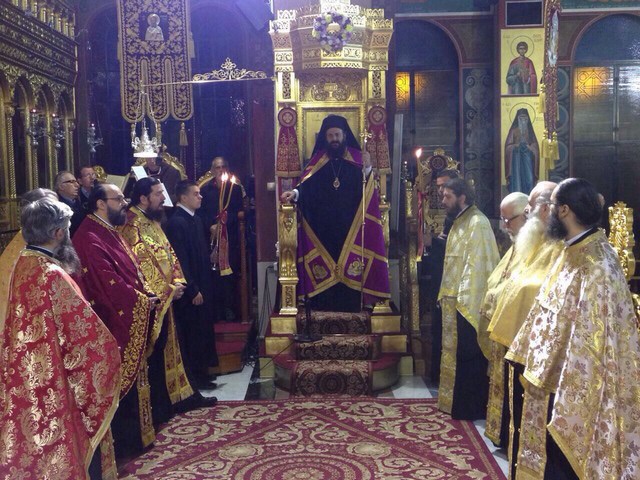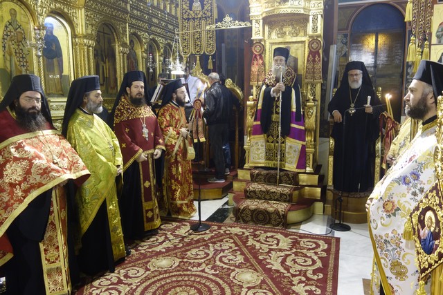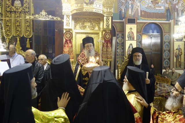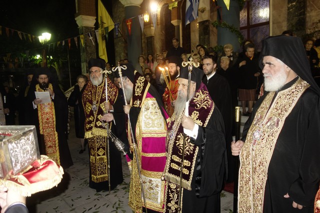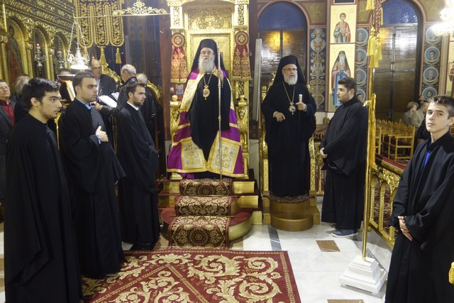 Στον πανηγυρικό εσπερινό της ιεράς πανηγύρεως των εν Λαρίση διαλαμψάντων Αγίων χοροστάτησε ο Σεβασμιώτατος Μητροπολίτης Ζακύνθου και Στροφάδων κ. Διονύσιος, συγχοροστατούντων του Σεβασμιωτάτου Μητροπολίτου Ιλίου, Αχαρνών και Πετρουπόλεως κ. Αθηναγόρου και του σεπτού μας Ποιμενάρχου κ. Ιγνατίου, ενώ έψαλλε πολυμελής χορός εκλεκτών Ιεροψαλτών υπό την διεύθυνση του Πρωτοψάλτου του Ιερού Ναού και Διδασκάλου κ.Αθανασίου Παναγούλη. Ο Σεβασμιώτατος Μητροπολίτης μας κ. Ιγνάτιος καλωσόρισε τους προσκεκλημένους Αρχιερείς και τους ευχαρίστησε για τον κόπο τον οποίο υπεβλήθησαν και ήλθαν στην πόλη του Αγίου Αχιλλίου για να συνεορτάσουν τους τοπικούς μας Αγίους. Ο Μητροπολίτης Ζακύνθου κ. Διονύσιος μίλησε με γλαφυρότητα και ανέφερε τον τρόπο με τον οποίο κατεστάθησαν οι άγιοι της Εκκλησίας μας σκεύη εκλογής του Θεού και δοχεία της χάριτός Του.