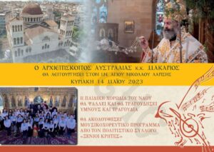 Στον Άγιο Νικόλαο την Κυριακή ο Αρχιεπίσκοπος Αυστραλίας