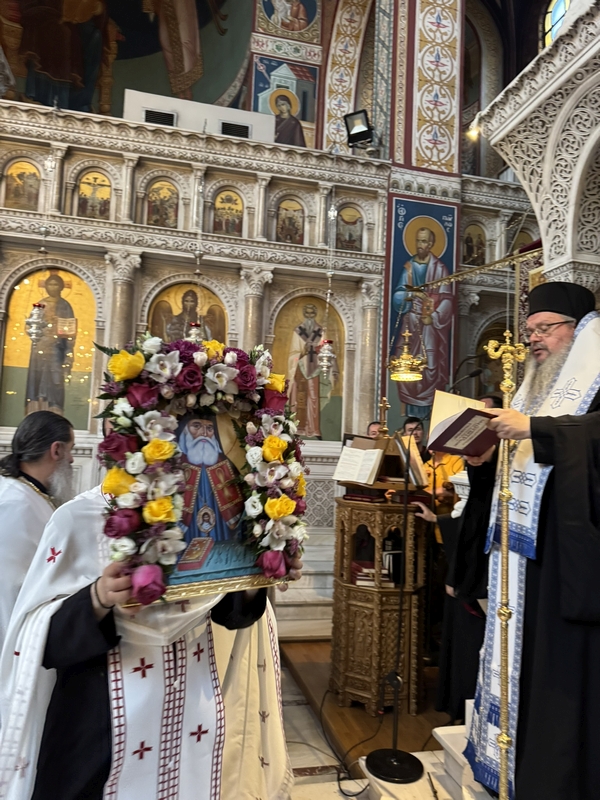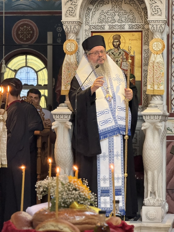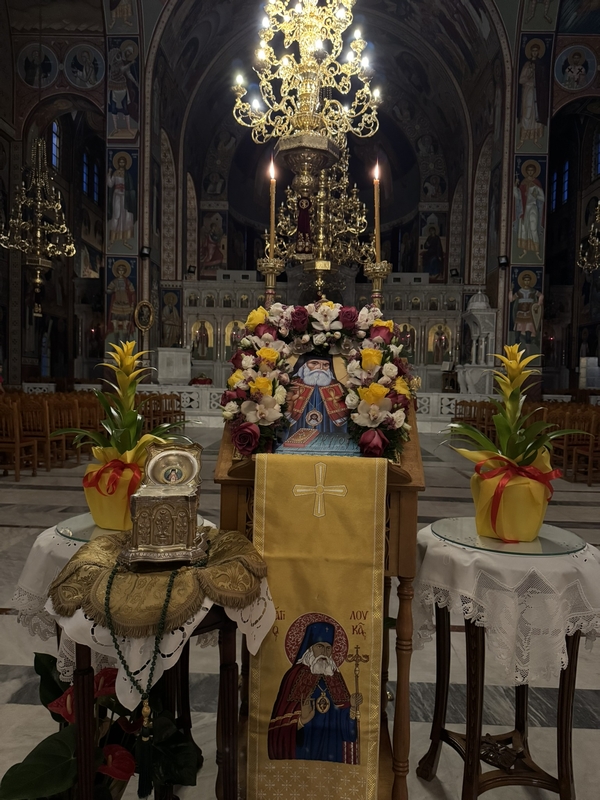 Στον κατάμεστο Ναό, όπου πλήθος κόσμου συνέρευσε για να προσκυνήσει ιερό απότμημα του Λειψάνου του Αγίου, καθώς και την χαριτόβρυτη Εικόνα του, ο Σεβασμιώτατος βρήκε την ευκαιρία να αναφερθεί στο βίο του Αγίου και τα μηνύματα που έχει να μας προσφέρει. Παρά το γεγονός ότι ο Άγιος δεν ετελειώθη μαρτυρικώς, η όλη βιοτή του ήταν ένα διαρκές μαρτύριο, καθώς εναλλάσσονταν εξορίες, βασανιστήρια, φυλακίσεις, αλλά και η εσωτερική διαπάλη, σε μια ιστορική συγκυρία φοβερά φορτισμένη από αντιεκκλησιαστικό μένος και χαρακτηριζόμενη από περιφρόνηση στην ανθρώπινη ζωή. Στο τέλος ο Σεβασμιώτατος παρακάλεσε τους πιστούς, να προσευχηθούν βεβαίως για τα δικά τους ζητήματα, πρώτιστα όμως να παρακαλέσουν για την ειρήνη στην περιοχή της πολύπαθης Ουκρανίας, για την κατάπαυση του πυρός και την εδραίωση μιας σταθερότητας, τόσο αναγκαίας, για να επουλωθούν τα τόσα τραύματα, να κλείσουν πληγές κι οι αδελφοί μας να βρουν την πορεία τους προς ένα καλύτερο μέλλον.
