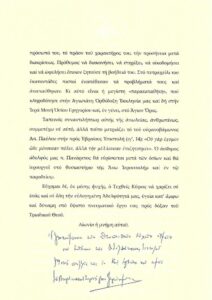 Συλλυπητήρια Επιστολή Σεβασμιωτάτου για την εις Κύριον Εκδημία του π. Παναρέτου Γρηγοριάτη