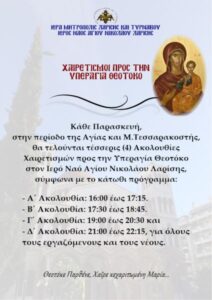Τέσσερις Ακολουθίες Χαιρετισμών στον Ι. Ν. Αγίου Νικολάου Λαρίσης