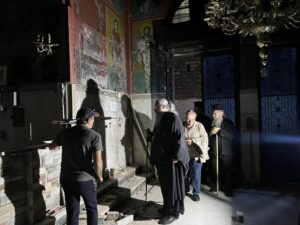Τις εργασίες αποκατάστασης του Ιερού Προσκυνήματος Αγίας Παρασκευής Τεμπών επιθεώρησε ο Σεβασμιώτατος.