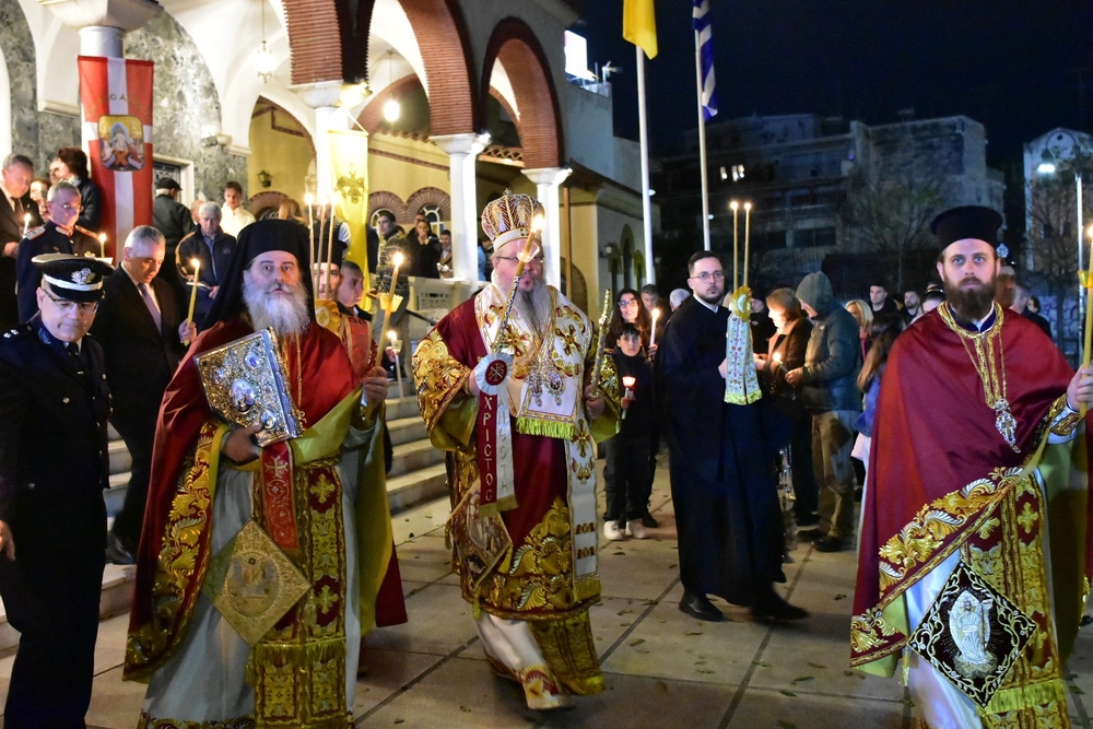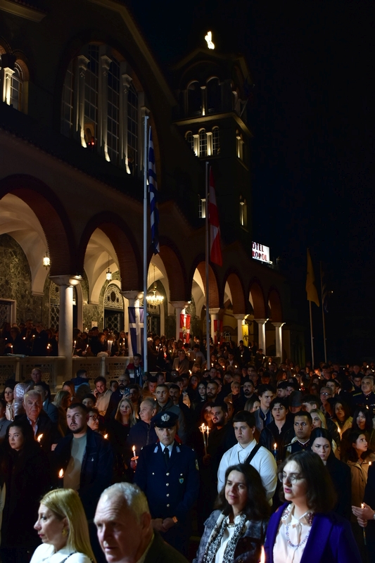 Με μεγαλοπρέπεια εορτάζεται το Άγιο Πάσχα στον Μητροπολιτικό Ιερό Ναό του Αγίου Αχιλλίου! Ο Σεβασμιώτατος Μητροπολίτης μας Λαρίσης και Τυρνάβου κ. Ιερώνυμος, παρουσία της πολιτικής και στρατιωτικής ηγεσίας της περιοχής, χοροστάτησε στην Ακολουθία της Παννυχίδος και του Όρθρου και τέλεσε την Θεία Λειτουργία του Πάσχα, πλαισιούμενος από τους Εφημερίους του Ναού Αρχιμ. Ραφαήλ Ευαγγέλου και Πρωτοπρ. Σπυριδωνα-Αθανάσιο Σάσσαλο, καθώς και τον Αρχιδιάκονο Ιεράς μας Μητροπόλεως Θεοδωρο Κούτλα.