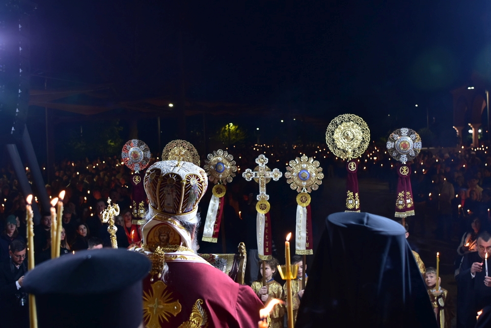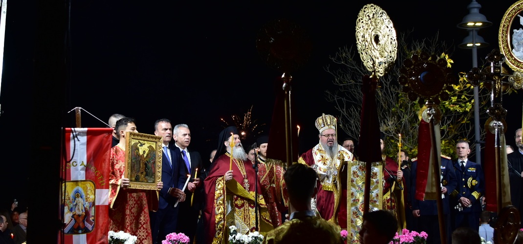 Ο προϊστάμενος του Ιερού Ναού π. Ραφαήλ ανέγνωσε την πασχαλινή εόρτιο Εγκύκλιο του Σεβασμιωτάτου, ευλογήθηκαν τα πασχάλια ωά, ενώ προ της απολύσεως ο Σεβασμιώτατος ευχήθηκε ο Αναστάς Κύριός μας να ευλογεί τον λαό του και να μην λησμονήσουμε ποτέ πως η ζωή νικά τον θάνατο!
