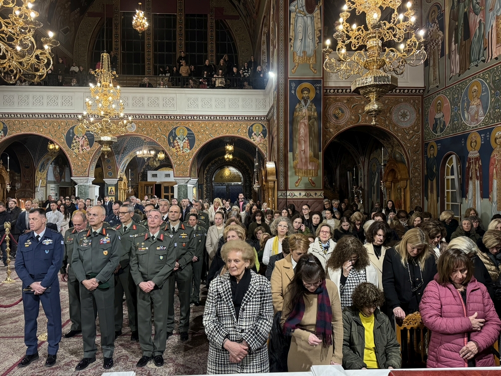 Στη συνέχεια ο Σεβασμιώτατος μετέβη στον Ιερό Μητροπολιτικό Ναό Αγίου Αχιλλίου Λαρίσης, όπου επίσης χοροστάτησε κατά την Γ´ Στάση των Χαιρετισμών στην Υπεραγία Θεοτόκο, ανάμεσα σε πυκνό εκκλησίασμα. Μεταξύ των παρισταμένων στην Ακολουθία ήταν και ο Ενδοξότατος Στρατηγός Δημήτριος Χούπης, Αρχηγός του Γενικού Επιτελείου Εθνικής Αμύνης, πλαισιούμενος από τον Ενδοξότατο Πτέραρχο Παναγιώτη Γεωργακόπουλο, Αρχηγό της Τακτικής Αεροπορίας, καθώς και τον Ενδοξότατο Στρατηγό Σταύρο Παπασταθόπουλο, Γενικό Επιθεωρητή Στρατού. Στο κήρυγμά του ο κ. Ιερώνυμος, λαμβάνοντας αφορμή από τον στίχο της Γ´ Στάσης των Χαιρετισμών: «Χαίρε η ταναντία εις ταυτό αγαγούσα», τόνισε το χαρακτηριστικό που έχει η Υπεραγία Θεοτόκος να ενώνει τα αντίθετα και να συνθέτει αυτά τα οποία αποκλίνουν, ώστε να δημιουργείται αρμονία, ενότητα και αγαπητική αλληλοπεριχώρηση. Παρατήρησε δε ότι αυτήν την ιδιότητα της Υπεραγίας Θεοτόκου έχει σήμερα ανάγκη ο κόσμος, καθώς βλέπουμε να δημιουργούνται πολεμικές εστίες και να ακούμε για πολέμους, με τέτοιο τρόπο ώστε να εντείνεται η ανησυχία και να αμφιβάλλουμε για το αύριο. Κάλεσε τους πάντες να αφεθούμε στην αγαπητική μέριμνα της Υπεραγίας Θεοτόκου, η οποία ξέρει να κινείται πέρα και πάνω από τα σχέδια των ανθρώπων, ακόμη και τον πιο ισχυρών της γης αυτής, αλλά και παρακάλεσε οι πάντες να προσευχηθούμε για τα πληρώματα των μονάδων του Στόλου και της Αεροπορίας, που σπεύδουν να προασπίσουν ευρωπαϊκά σύνορα, τα σύνορα της Κύπρου μας δημιουργώντας αίσθημα ασφάλειας στην άκρη του ελληνισμού.