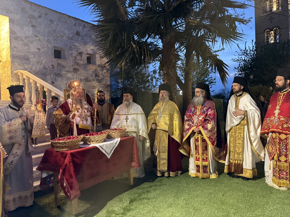 Κατά τη διάρκεια του Εσπερινού αναγνώσθηκε το Ευαγγέλιο στα Ελληνικά και Αγγλικά από τον Σεβασμιώτατο, στα Ομηρικά από τον Πρωτοψάλτη κ. Ευάγγελο Γκίκα, στα Ρουμανικά από τον π. Άνθιμο Ράτς, στα Σερβικά από τον π. Πέτρο Γρούγιτσιτς, στα Λατινικά από τον π. Πορφύριο Ζαχαράκη, στα Γερμανικά από τον π. Αλέξανδρο Παγκράτη, στα Γαλλικά και Ισπανικά από τον Πρωτοσύγκελλο π. Ιγνάτιο Μουρτζανό και στα Ελληνικά πάλι από τον Διάκονο π. Θωμά Τζικακόλια, ενώ στο τέλος της ακολουθίας, αφού Κλήρος και λαός επέστρεψαν λιτανευτική στο Μητροπολιτικό Αρχονταρίκι, ο Ποιμενάρχης μας αφού ευλόγησε τα πασχάλια ωά, μοίρασε ως ευλογία στους κληρικούς και τους πιστούς το κόκκινο αυγό, ευχόμενος το «ΧΡΙΣΤΟΣ ΑΝΕΣΤΗ».