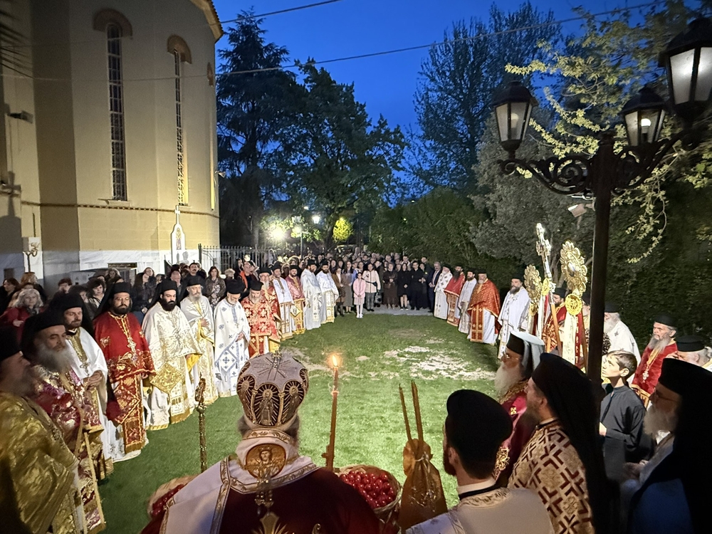 Στον Ιερό Μητροπολιτικό Ναό του Αγίου Αχιλλίου Λαρίσης, ο Σεβασμιώτατος και οι Κληρικοί προσήλθαν με λιτανευτική πομπή (παρρησία) από το Μητροπολιτικό Αρχονταρίκι, του οποίου τα εγκαίνια τελέστηκαν την Κυριακή των Βαίων. Στη σύντομη προσλαλιά του, ο Σεβασμιώτατος επαίνεσε τους κληρικούς για τη θυσιαστική διακονία τους όλη τη Μ. Εβδομάδα και ευχήθηκε το ανέσπερο Φως της Αναστάσεως να φωτίζει τις ζωές όλων.