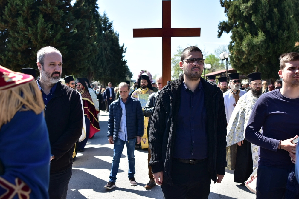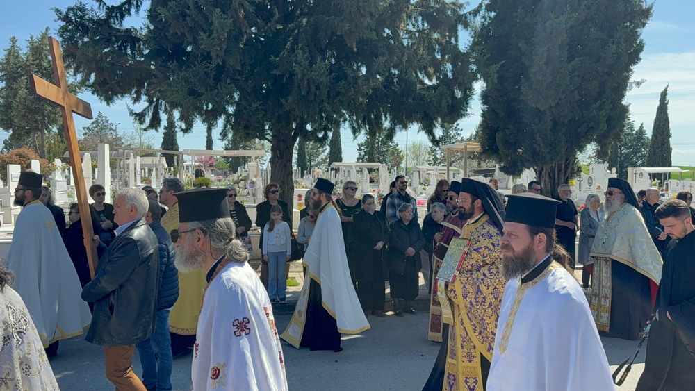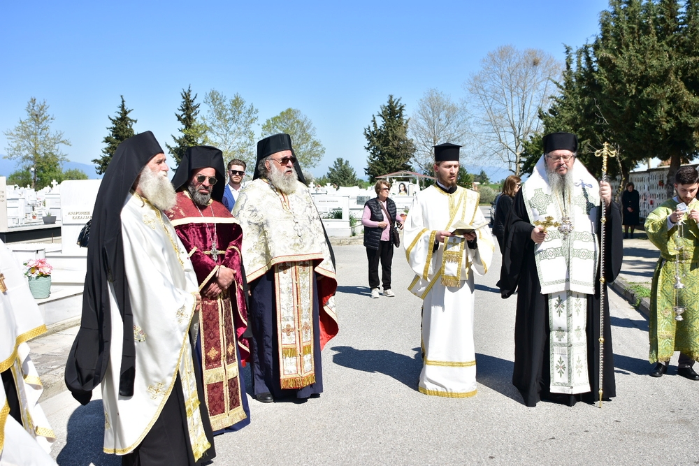 Παρόντος του Δημάρχου Λαρισαίων κ. Αθαν. Μαμάκου, βουλευτών του Νομού, Αντιπεριφερειαρχών, Αντιδημάρχων, και πλήθους κόσμου, πραγματοποιήθηκε η Έξοδος του Επιταφίου εντός του Κοιμητηρίου και στα μνήματα. Οι συγκινητικότερες στιγμές εκτυλίχθηκαν στα μνήματα των βρεφών και νηπίων, όπου νέοι γονείς έψαχναν την παρηγορία ατενίζοντας το Ιερό Κουβούκλιο.