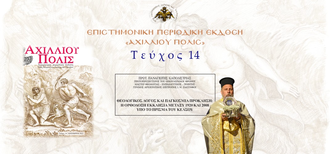 ΤΑ ΝΕΑ ΤΗΣ ΜΗΤΡΟΠΟΛΗΣ (16/03/2026)(20/03/2026) Πρωτ. Παναγιώτης Καποδίστριας: «Θεολογικός λόγος και παγκόσμια πρόκληση: Η Ορθόδοξη Εκκλησία μεταξύ 1920 και 2008 υπό το πρίσμα του Κέλσου». Posted By: imlarisis Άρθρο του Θεολόγου (MSc), Εκπαιδευτικού, Ποιητού και Γενικού Αρχιερατικού Επιτρόπου Ι. Μ. Ζακύνθου, Αιδεσιμολογιωτάτου Πρωτοπρεσβυτέρου του Οικουμενικού Θρόνου Παναγιώτη Καποδίστρια. Διαβάστε το άρθρο με ένα κλικ στην εικόνα.