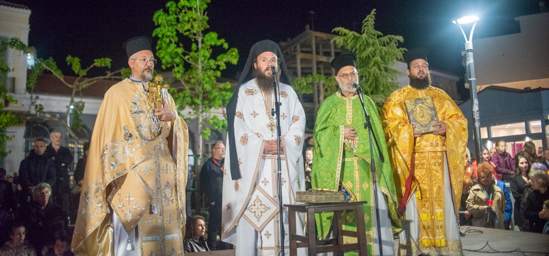 Στην κεντρική πλατεία του Τυρνάβου, τελέστηκε δοξολογική δέηση από τον Αρχιερατικό Επίτροπο π. Γεώργιο Παπαϊωάννου, ο οποίος πλαισιώθηκε από τους ιερείς των ενοριών. Παρούσα ήταν και η τοπική ηγεσία, με τον Δήμαρχο Τυρνάβου, κ. Στέλιο Τσικριτσή, να τιμά τη σημαντική αυτή στιγμή της Μεγάλης Παρασκευής.