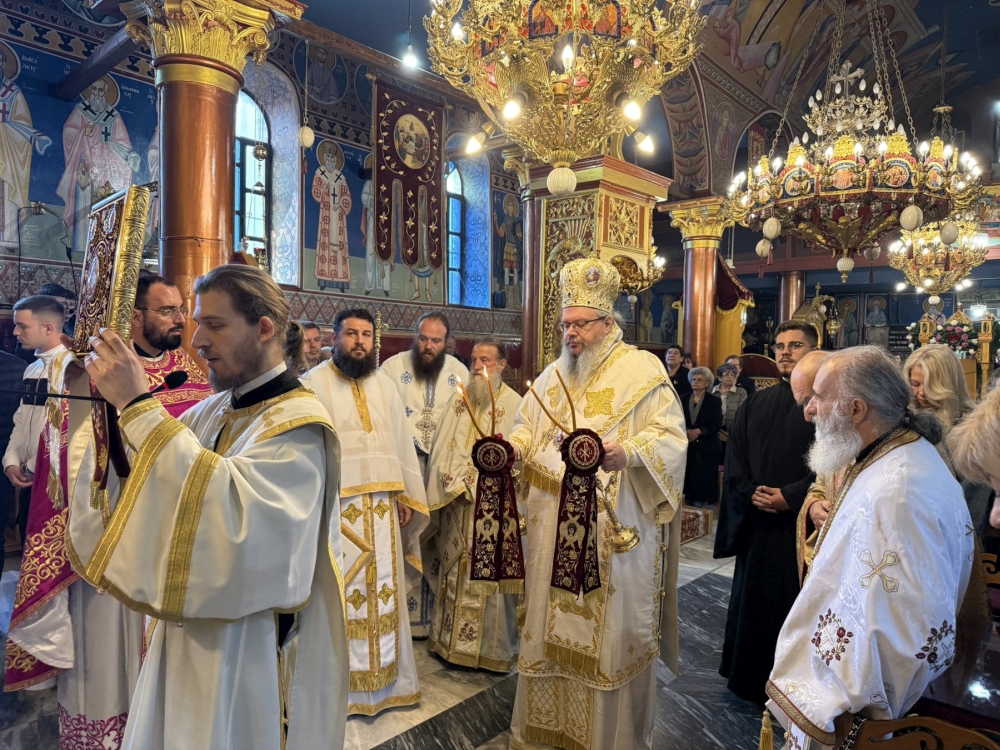 Στον πανηγυρίζοντα Ιερό Ναό της Παναγίας Ζωοδόχου Πηγής Αργυροπουλίου, Δήμου Τυρνάβου, χοροστάτησε στον Πανηγυρικό Όρθρο και στη συνέχεια τέλεσε τη Θεία Λειτουργία ο Σεβασμιώτατος Μητροπολίτης Λαρίσης και Τυρνάβου κ. Ιερώνυμος.